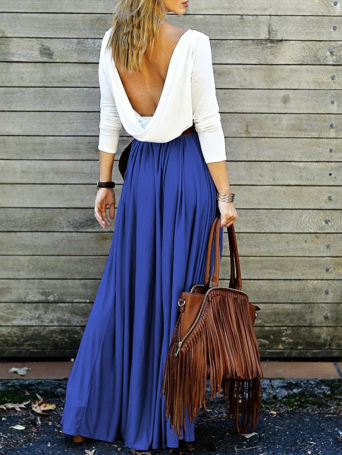Alluring Long Sleeve Open Back Draped Maxi Dress